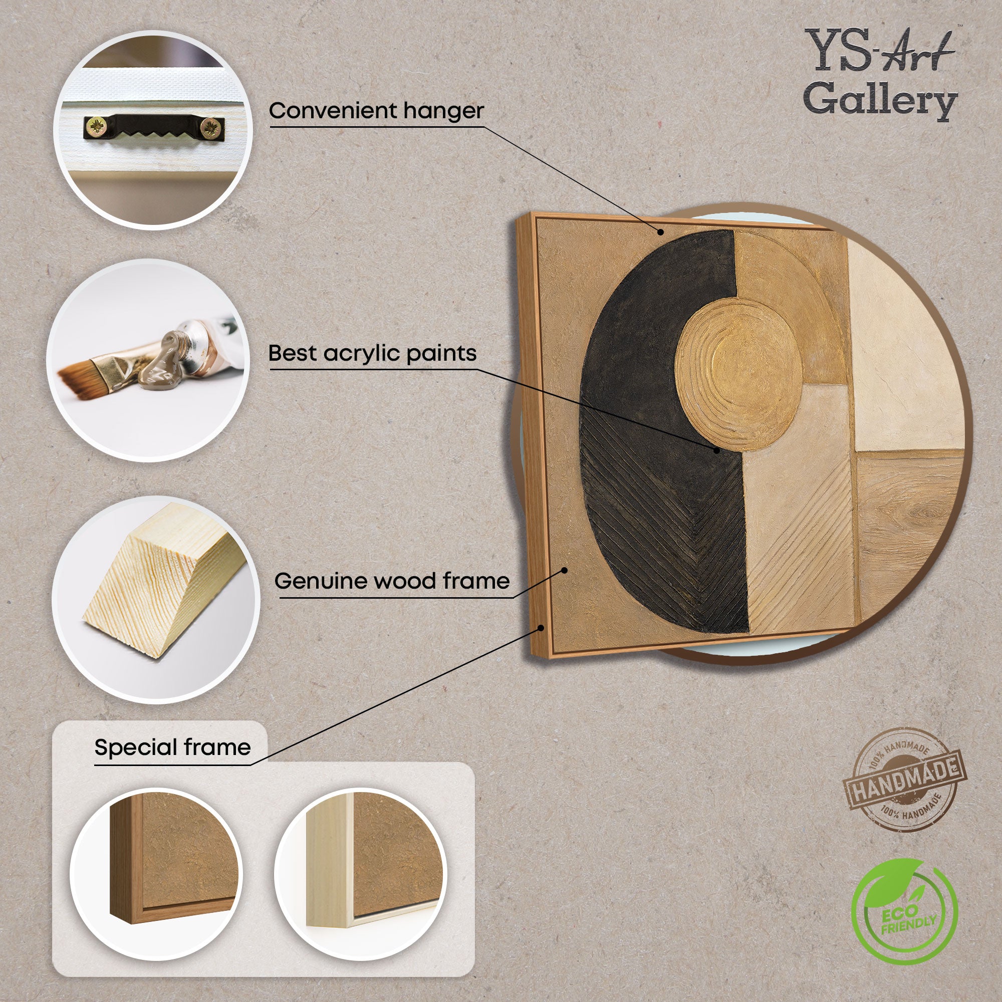• Handgemalte Acrylkunst mit goldener Struktur