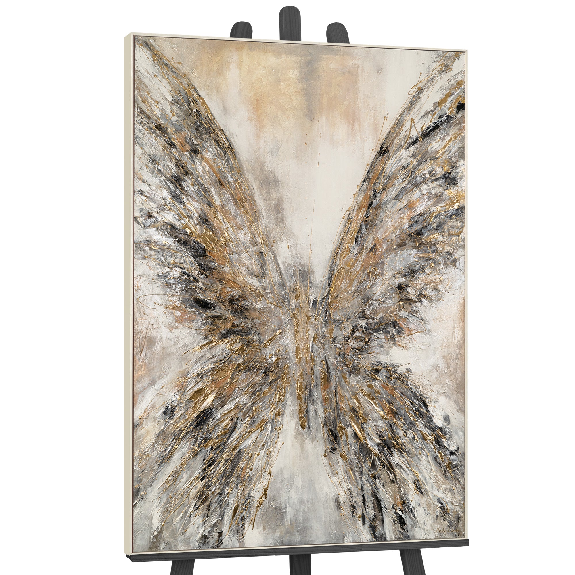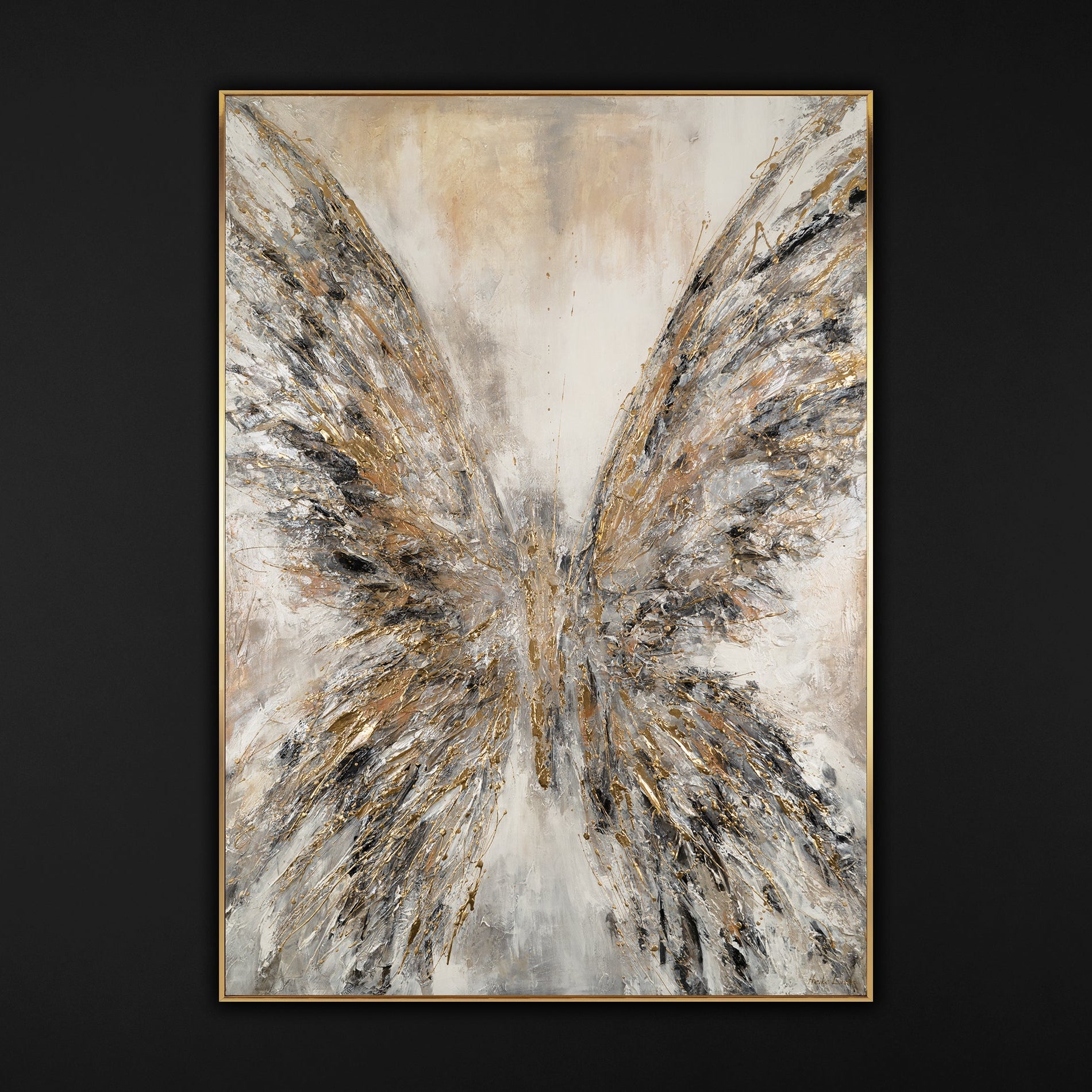 • Abstrakte Engelflügel Wandkunst handgemalt Gold Grau Deko