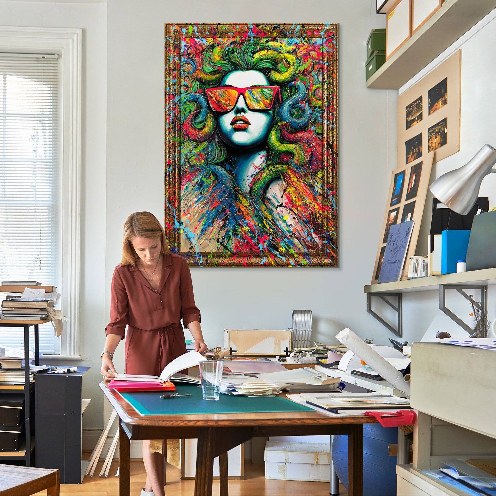 • Moderne Wandkunst Portrait Acrylbild Neonfarben Struktur