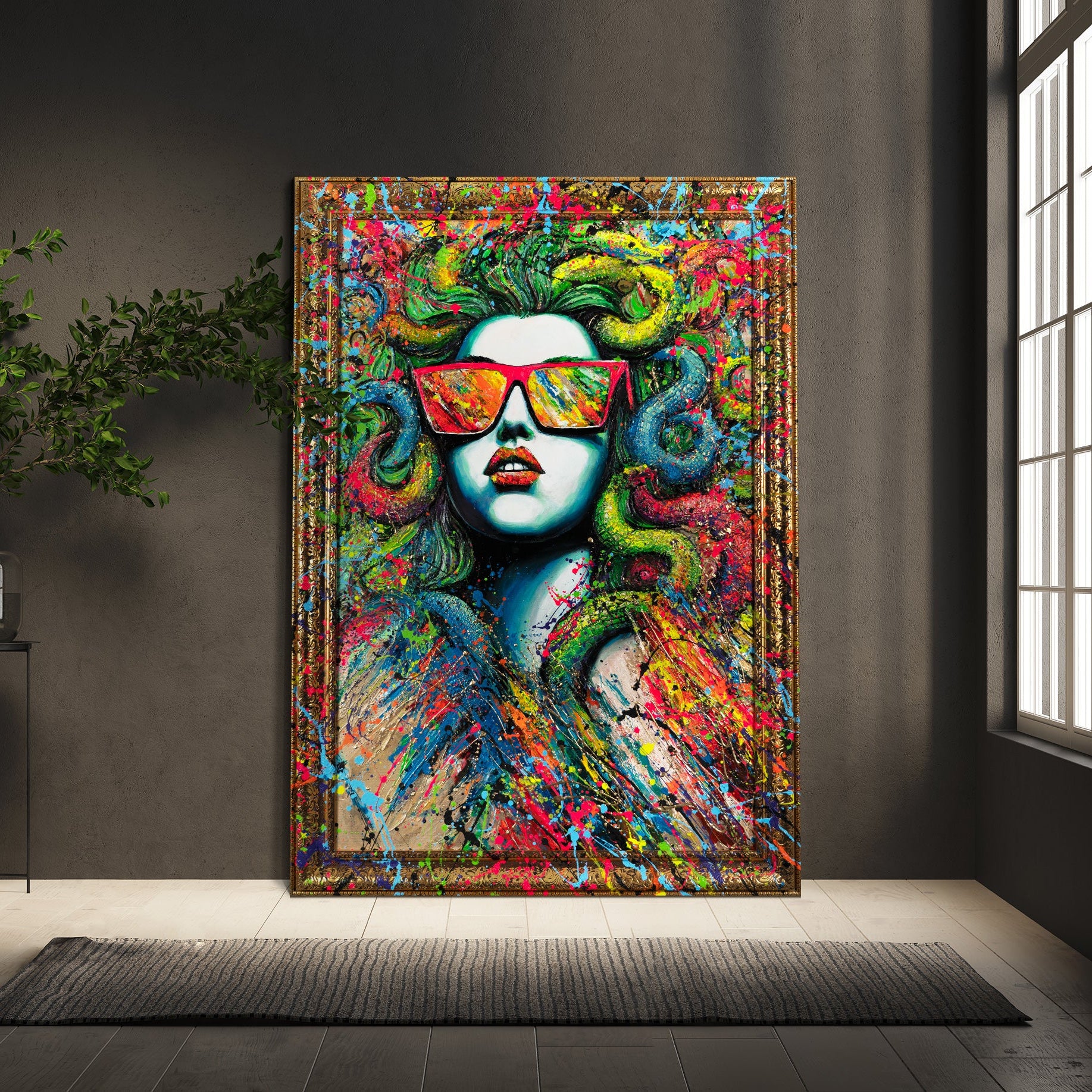 • Abstract moderne Handgemalte bilder auf Leinwand mit Rahmen "Der Mythos Neon"