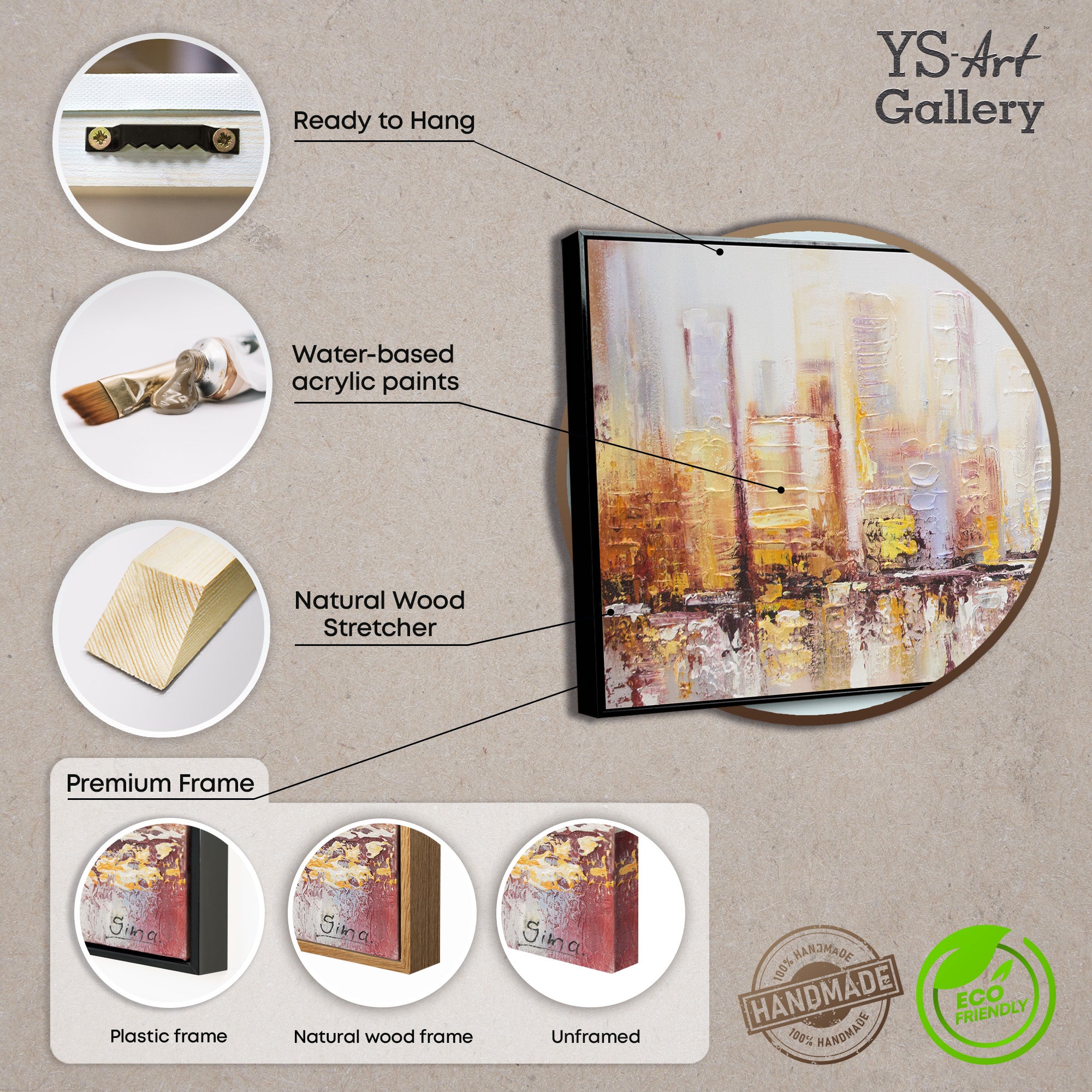 Unser acrylbild handgemalt Morgen’s in Megapolis, das viel frischen und sonnigen Tönen gemalt worden ist, passt hervorragend in Zimmern die dunkel und kalt sind. Das Gemälde einer Stadtlandschaft wird sowohl in Ihrem Wohnzimer als auch im Arbeitszimmer harmonisch aussehen.