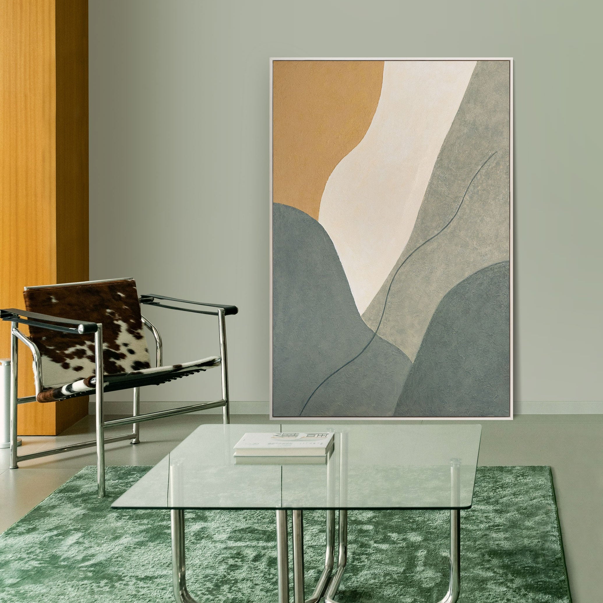 Abstraktes Acrylbild mit Rahmen „Ewige Linie“ – Moderne Wanddeko in Naturfarben