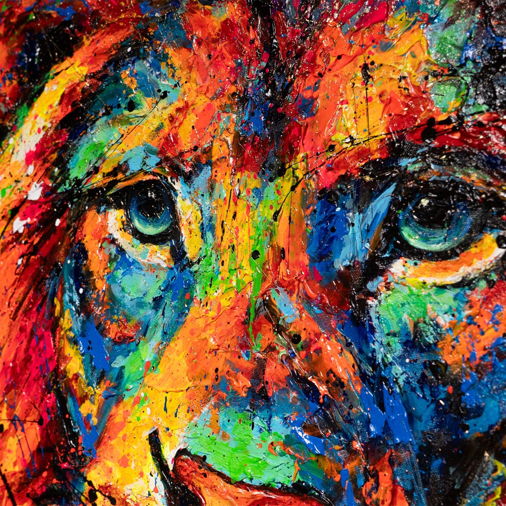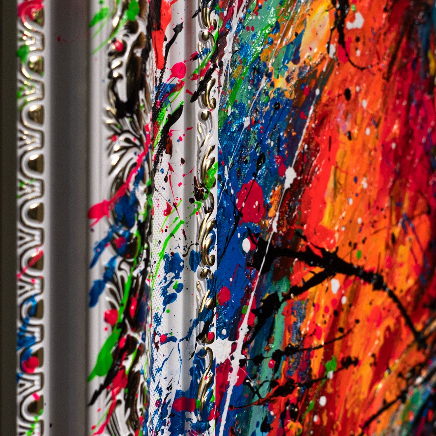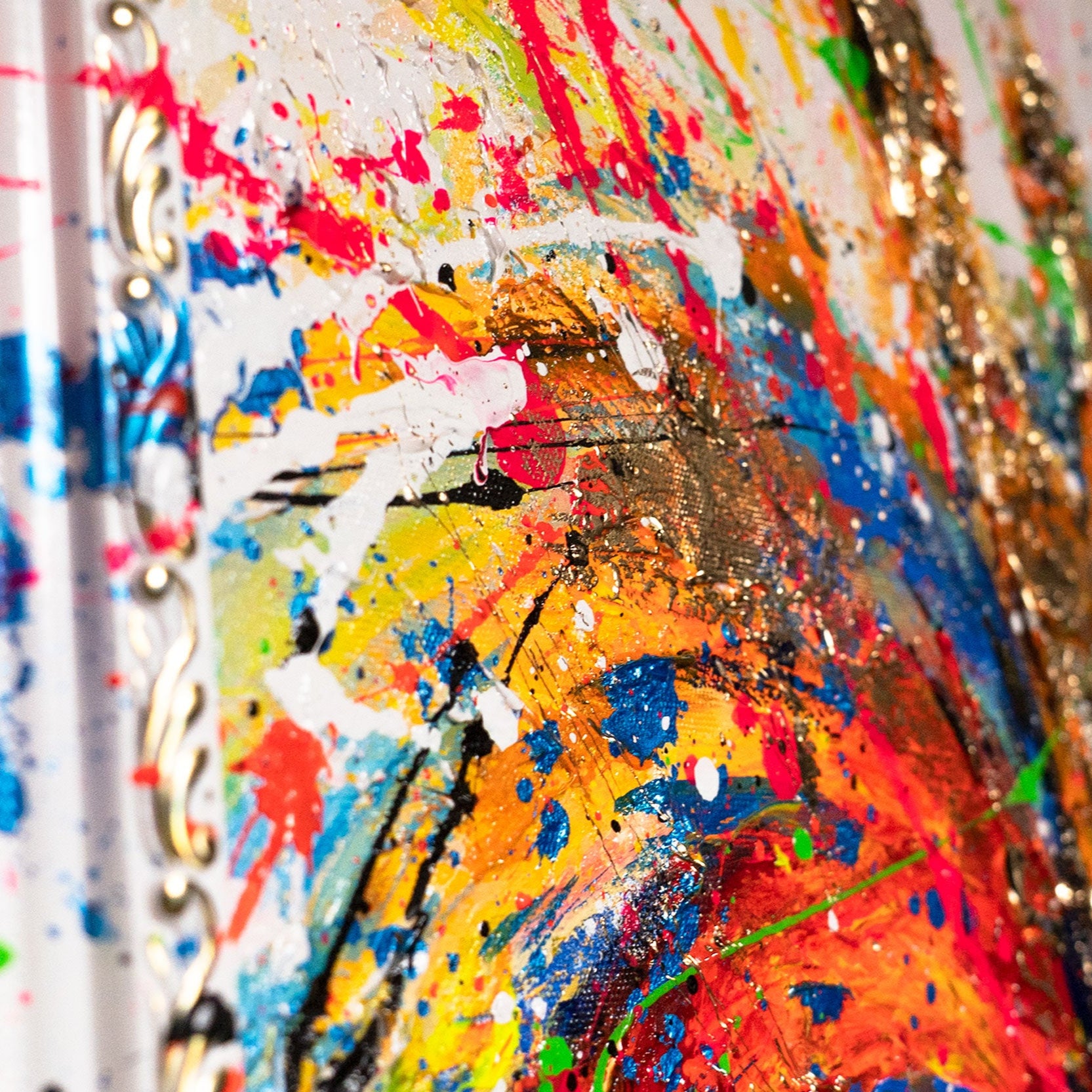 • Abstraktes Gemälde auf Leinwand – Handgemalte Kunst mit Rahmen „König der Farben“