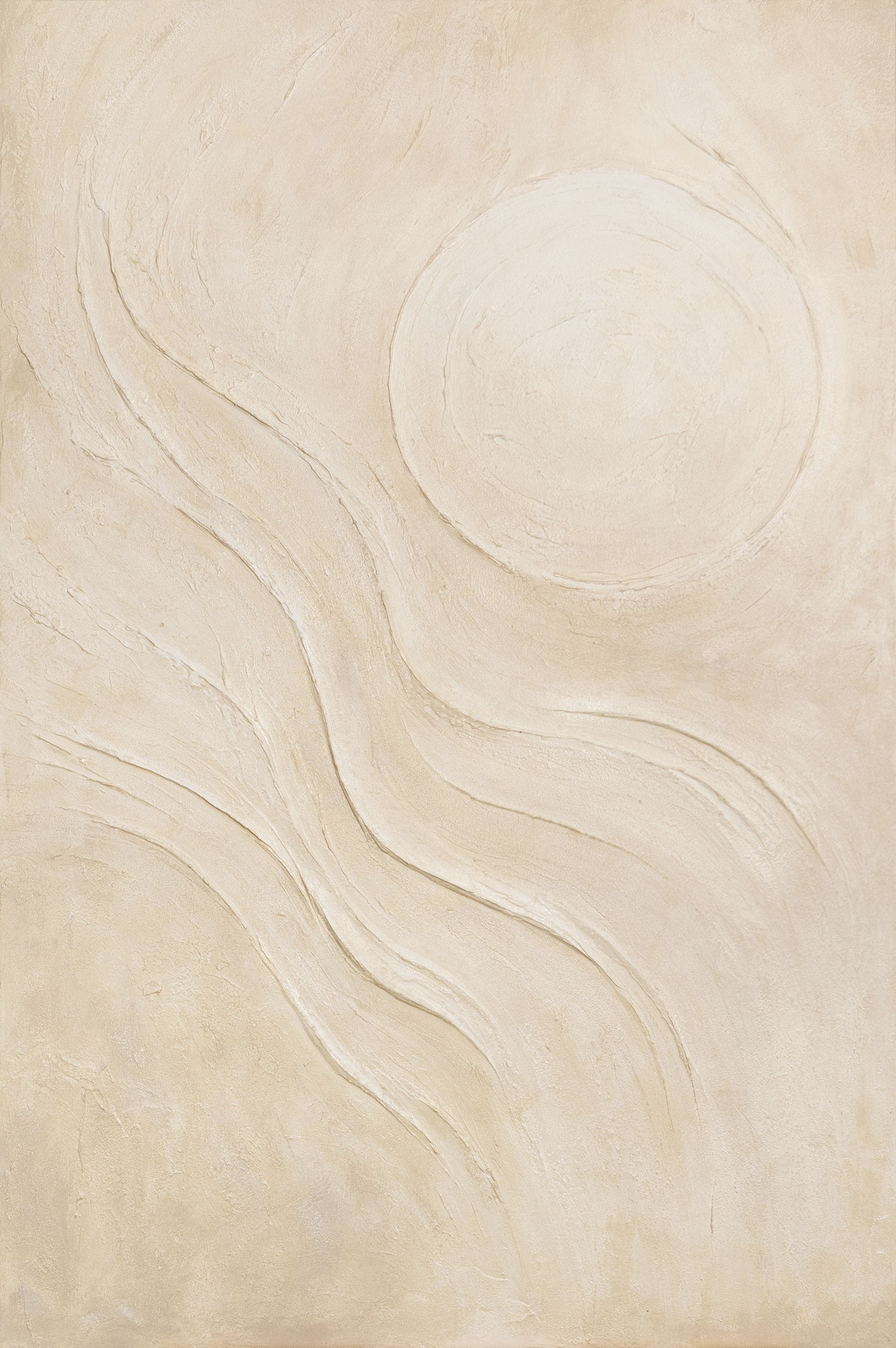 „Sandige Sonne“ bringt Natürlichkeit und Ruhe in jeden Raum. Das strukturierte Design in warmen Beigetönen schafft ein Gefühl von Geborgenheit und Leichtigkeit – ein exklusives Unikat für stilvolle Innenräume, inklusive kostenlosem Versand.