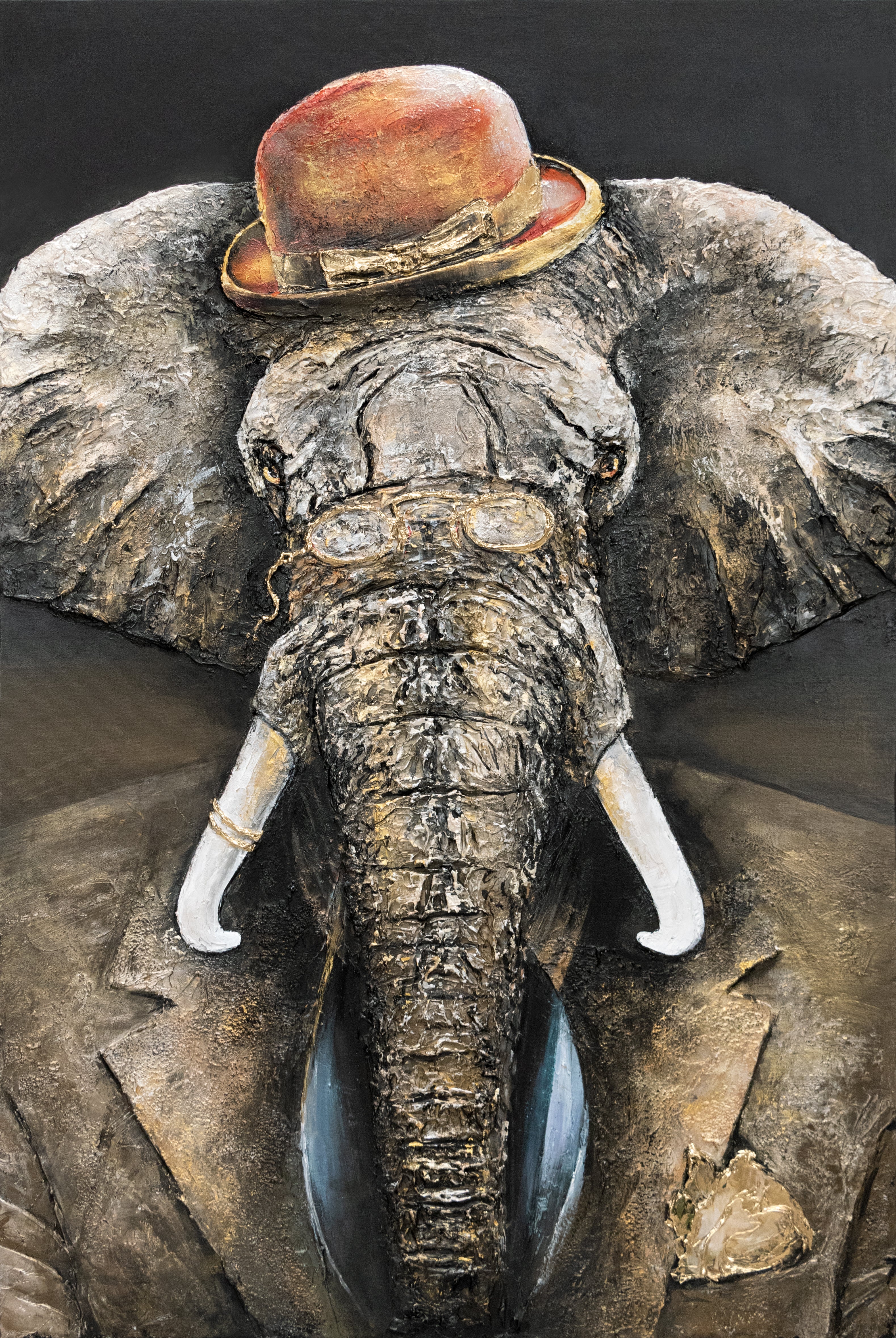 Eleganz und Kraft, Stil und Luxus, Intelligenz und ein wenig Wagemut werden im Gemälde „Herrschaft“ ideal vereint. Leichte Blattgoldstriche und Texturen ergänzen die Exklusivität dieses Gemäldes.