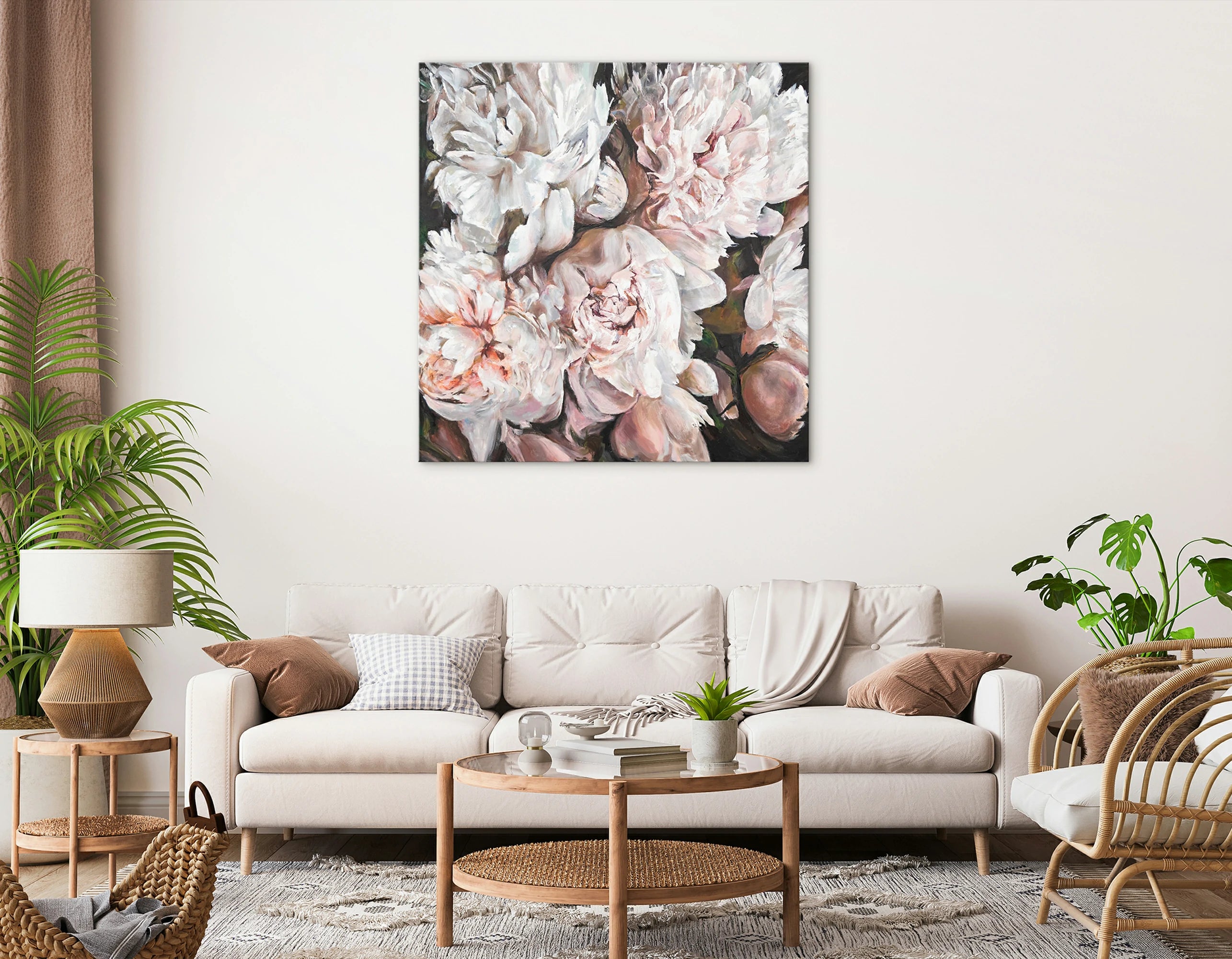 Blumenbilder acryl auf leinwand "Pfingstrosen Strauß"