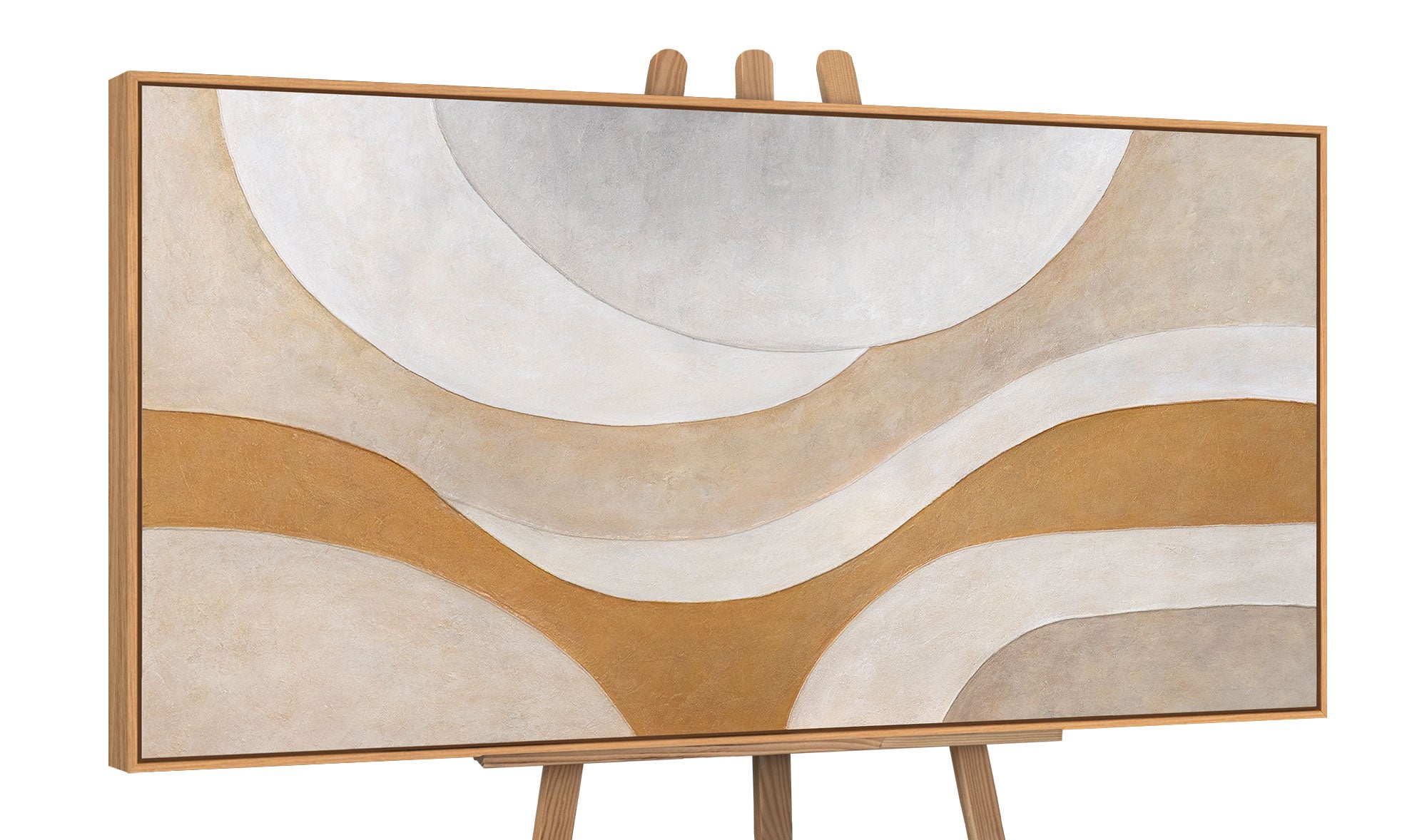 Durch seine Formate eignet sich das Gemälde sowohl als elegantes Panorama als auch als beeindruckendes Element unter XXL-Wandbildern in abstrakter Optik. In größeren Räumen wirkt es als stilvolle Großformat-Kunst, die Struktur schafft, ohne dominant zu erscheinen. Die warme Farbpalette macht es zudem zu einem idealen Beispiel für hochwertige Bilder in warmen Farben und ein dezentes Gemälde in Beige und Gold, das zeitlose Eleganz vermittelt.