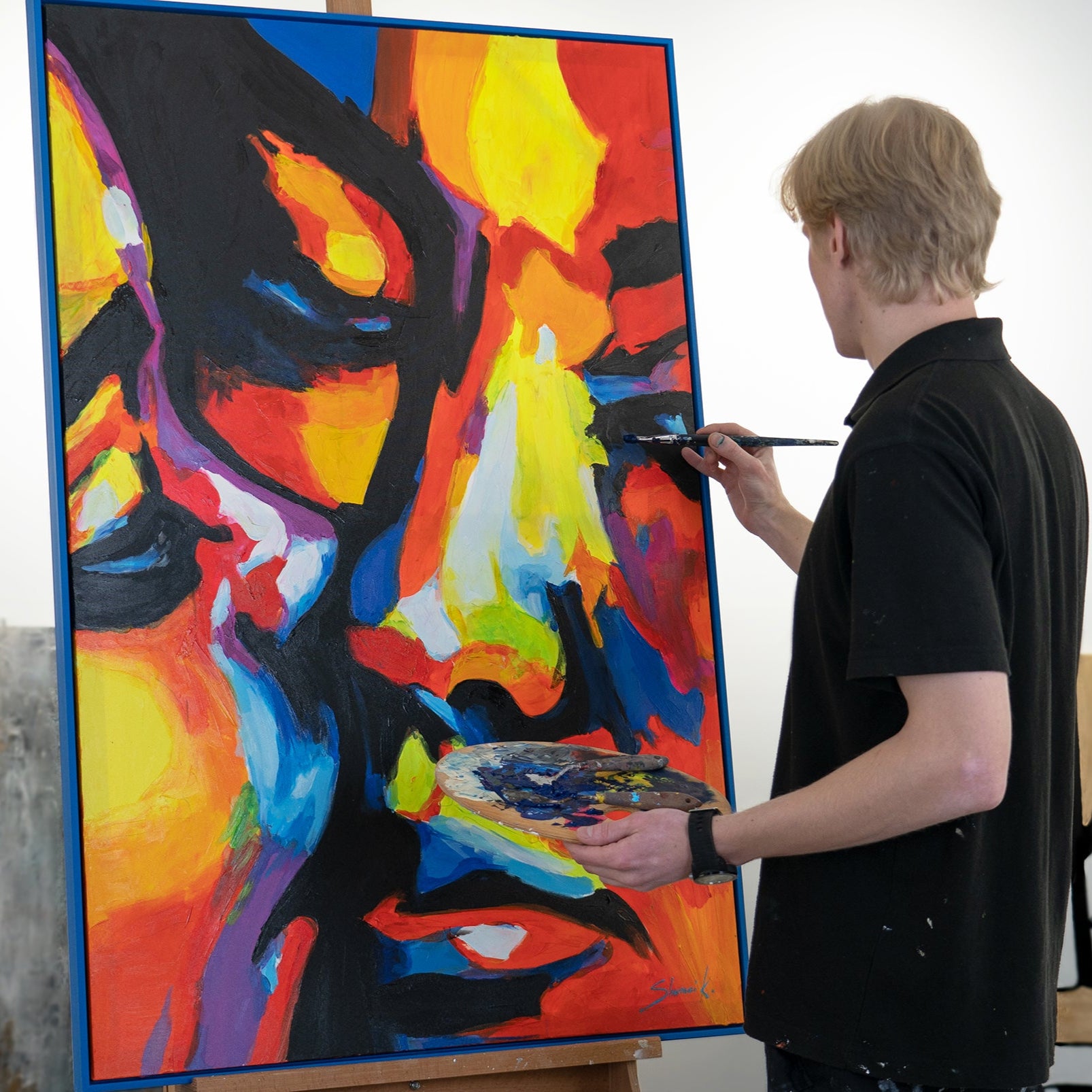 • Handgemalte Acrylkunst Porträt Farben Relief