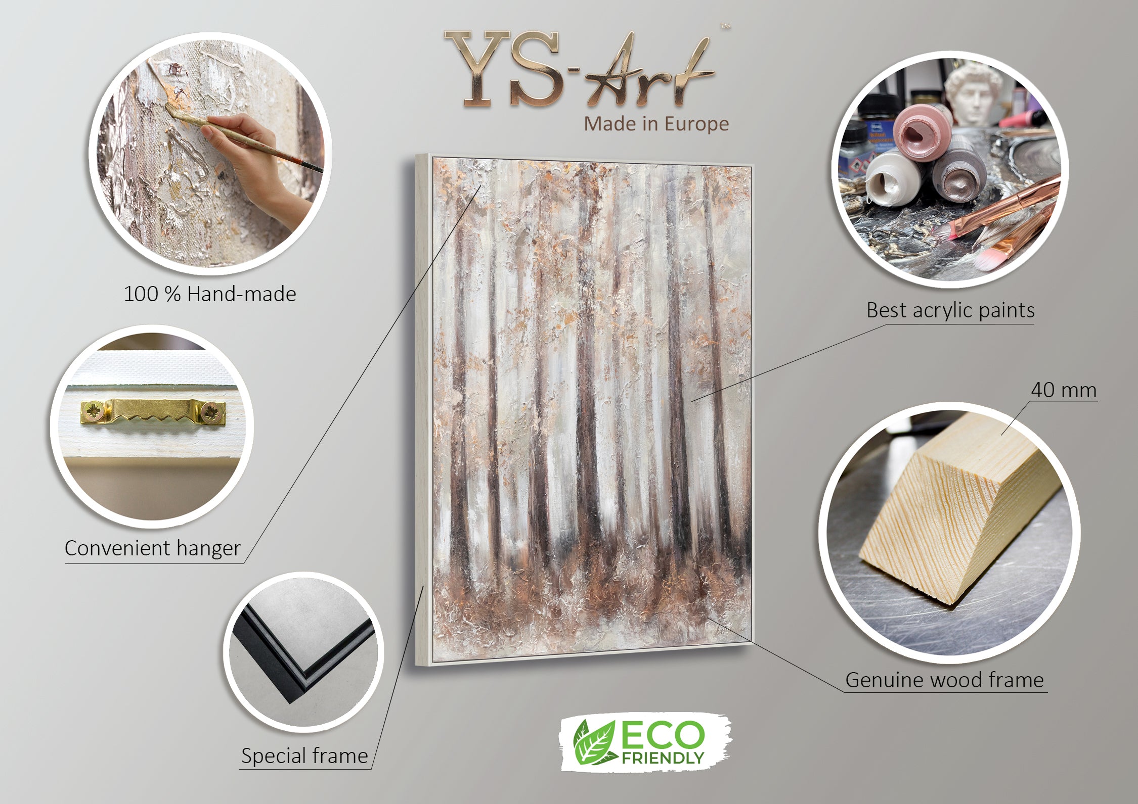 Wir kreieren Gemälde und Wandbilder in verschiedenen Ausführungen, Größen und Motiven. Zu verschiedenen Themen, Anlässen und Einrichtungsarten finden Sie bei uns Ihr persönliches Lieblingswerk. Ergänzt wird unser Sortiment durch außergewöhnliche Wohnaccessoires wie Design-Uhren. Tauchen Sie ein in die YS-ART-Welt mit pulsierenden Farben und vielfältigen Motiven. Lernen Sie die Werke unserer Künstler kennen und erleben Sie die Bedeutung von Inspiration und Leidenschaft.