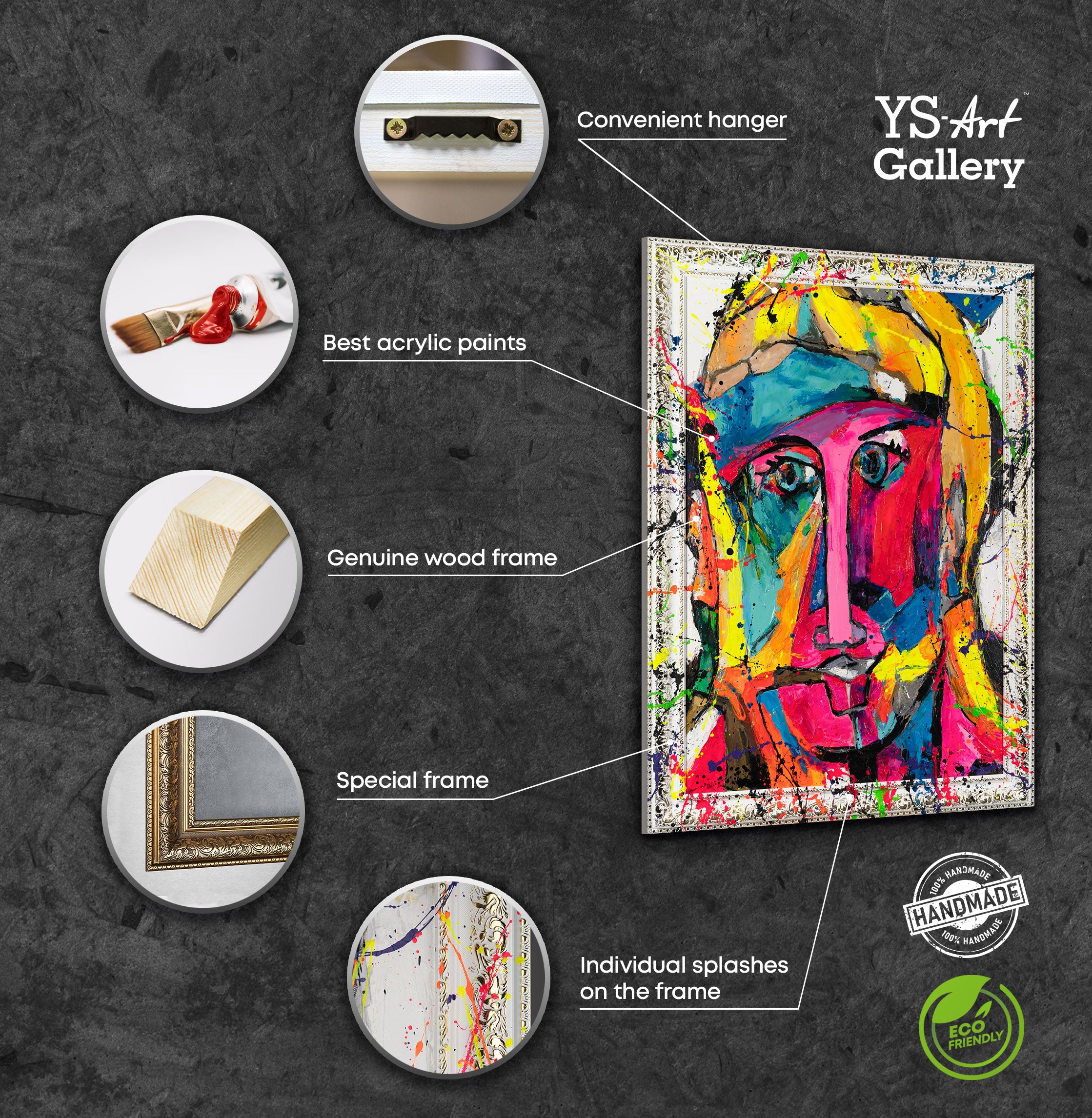 • Abstraktes Portrait Acrylmalerei Handgemalt Relief Kunst