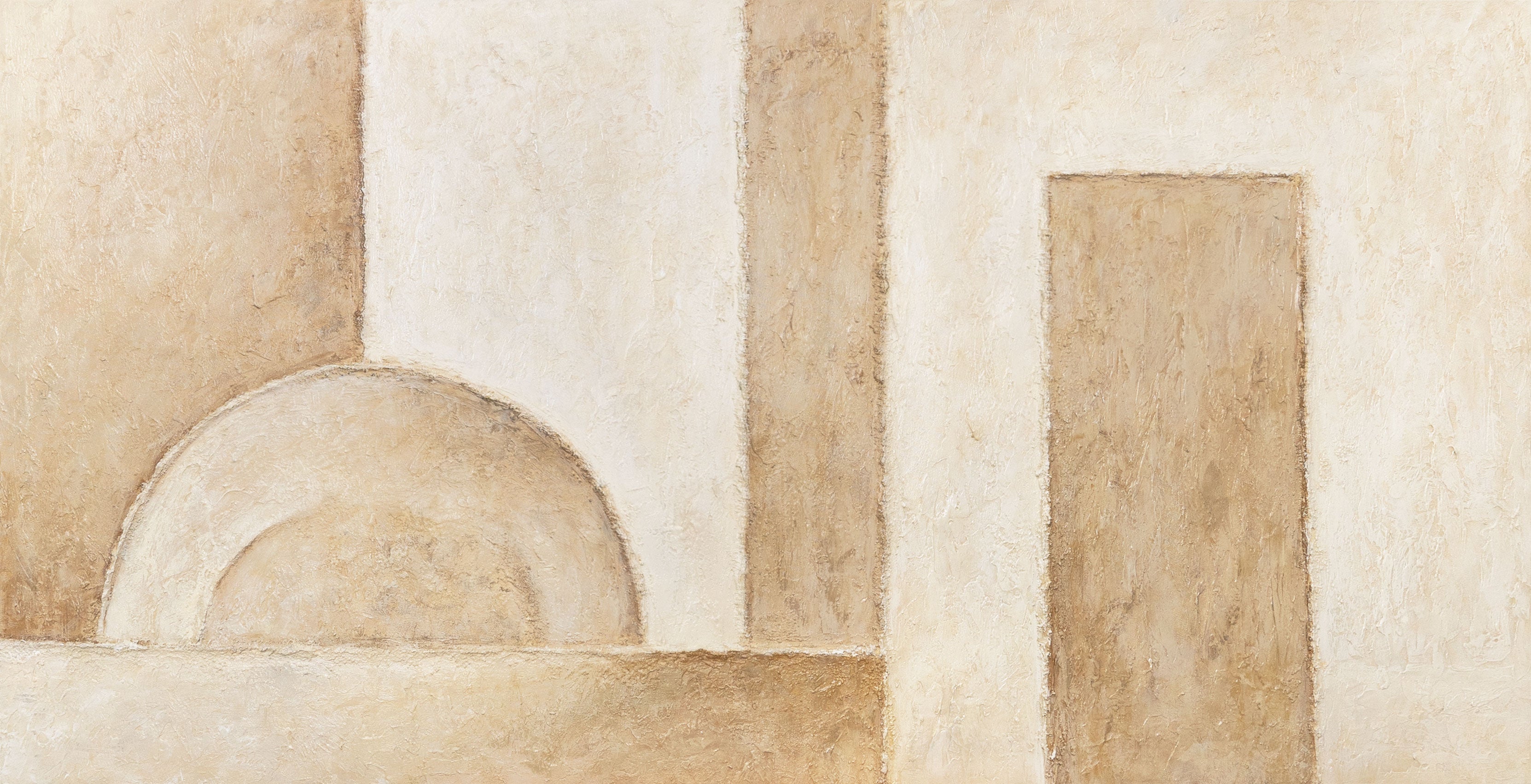 Bringen Sie klare Eleganz und architektonische Harmonie in Ihr Zuhause mit diesem handgemalten Wandbild. Geometrische Formen in sanften Beige- und Sandtönen vereinen sich zu einer modernen, minimalistischen Komposition, die Ruhe und Ausgeglichenheit ausstrahlt.