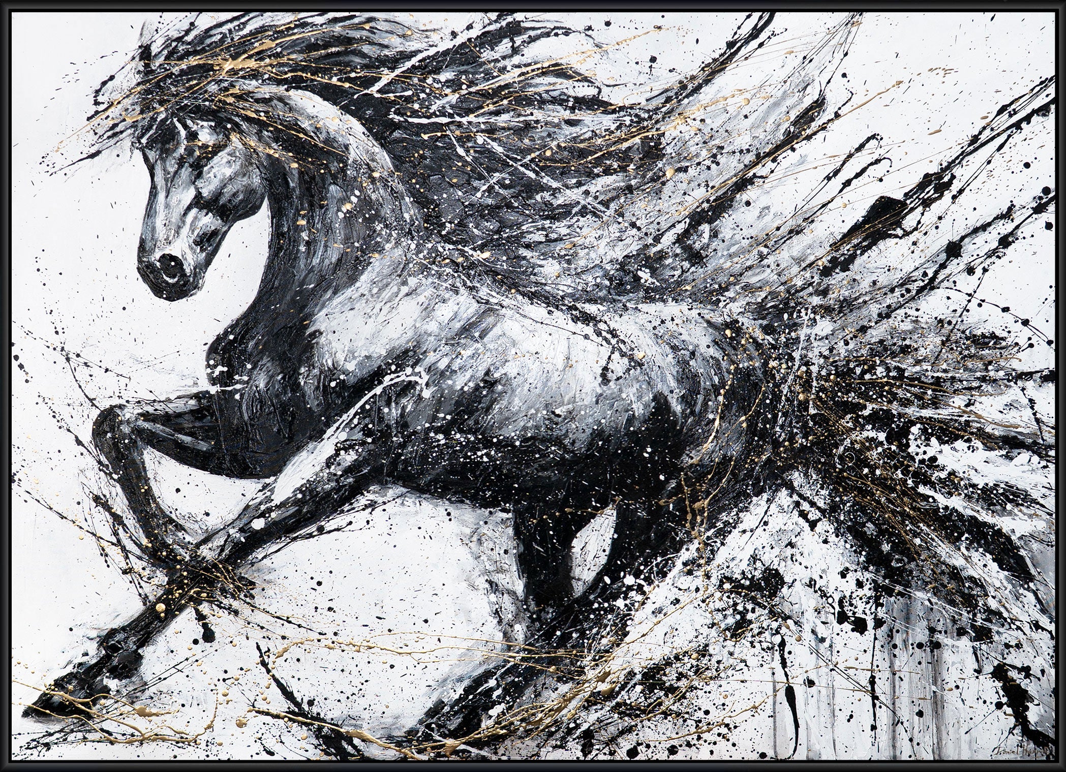 Handgemaltes Acrylbild „Galoppierendes Pferd“ – dynamische Wanddeko auf Leinwand mit Rahmen