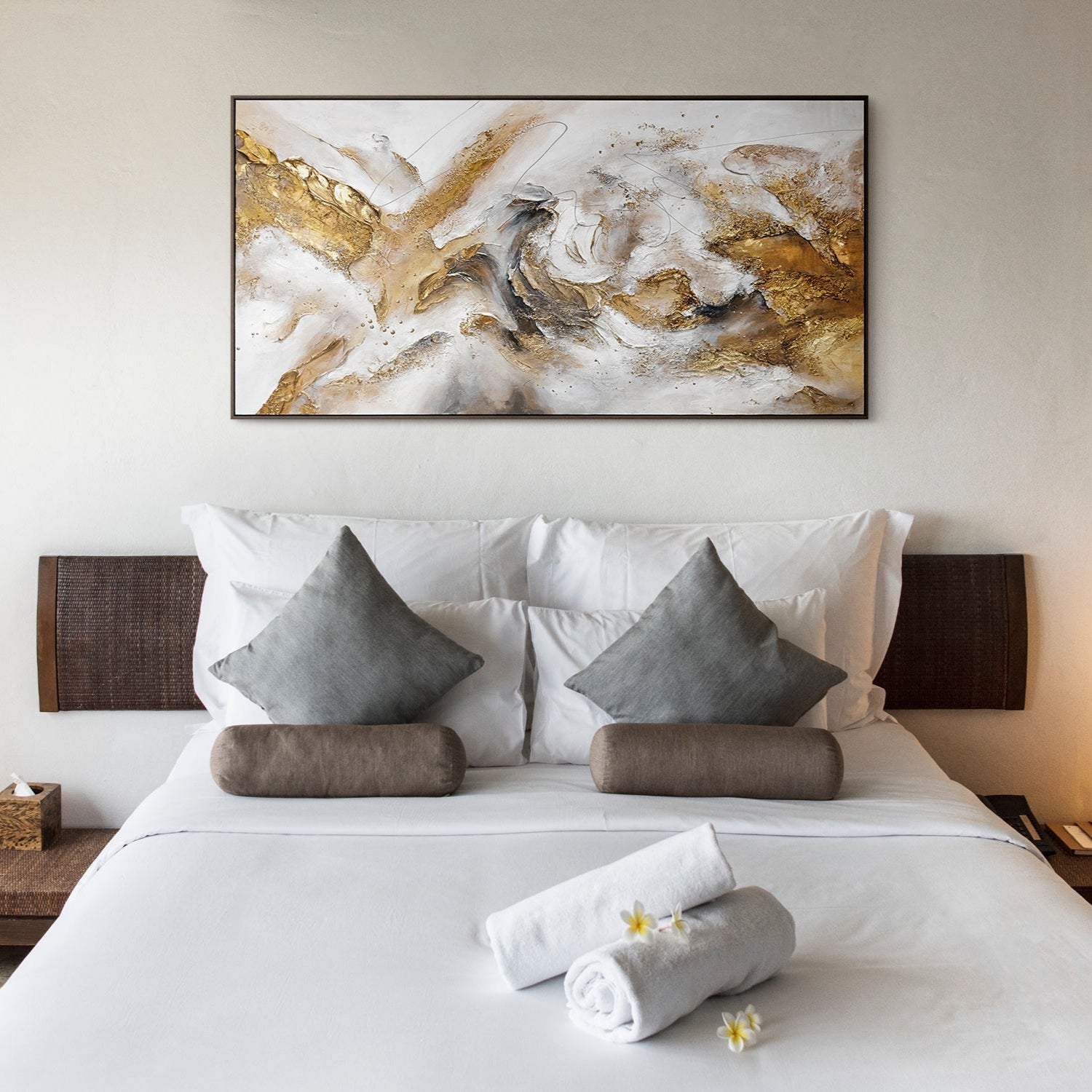 • Aufgerollte Leinwand Acrylbild Gold Beige Strukturmalerei