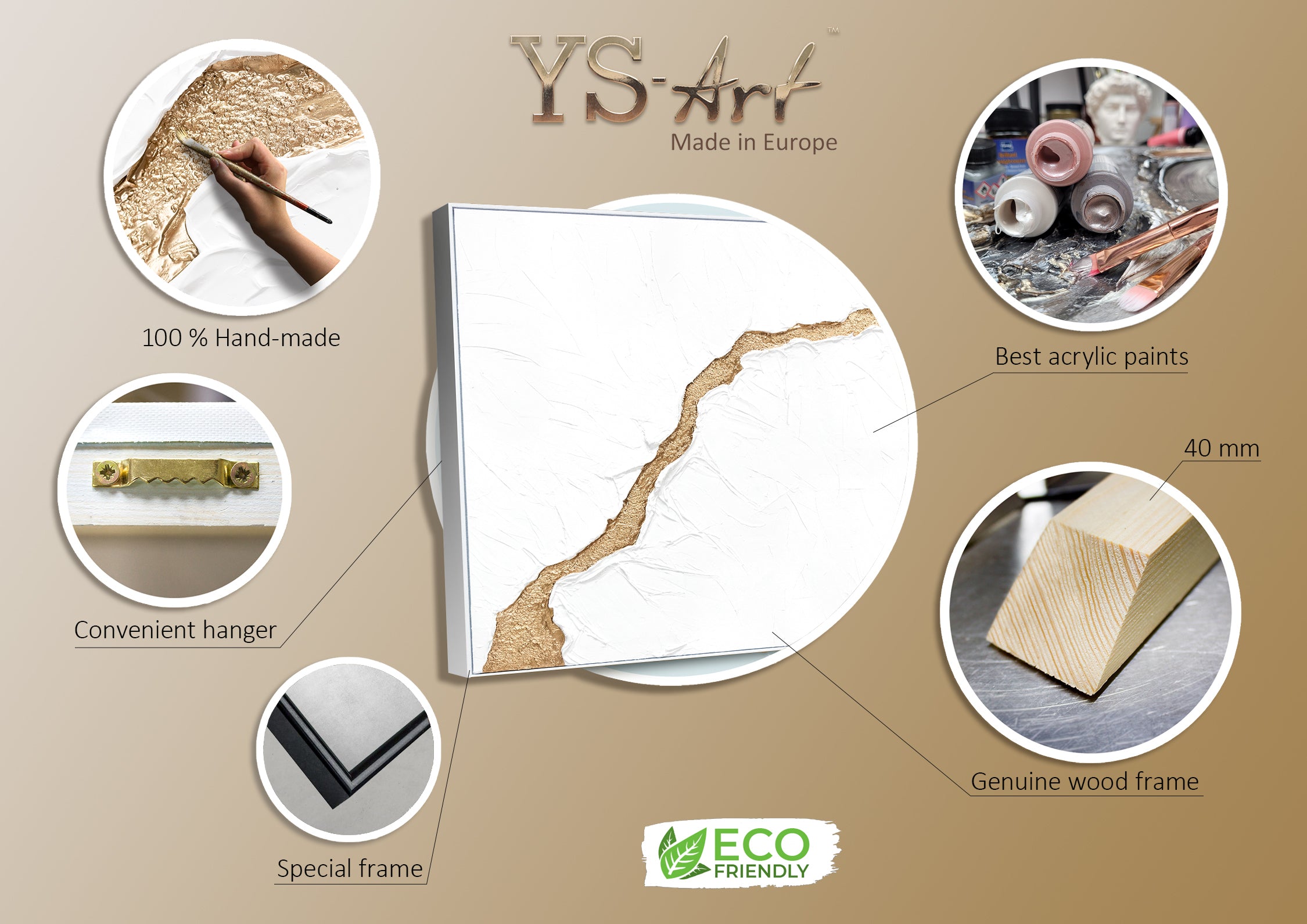 • Acrylstruktur Gold Weiss Handgemalt Detail Oberfläche