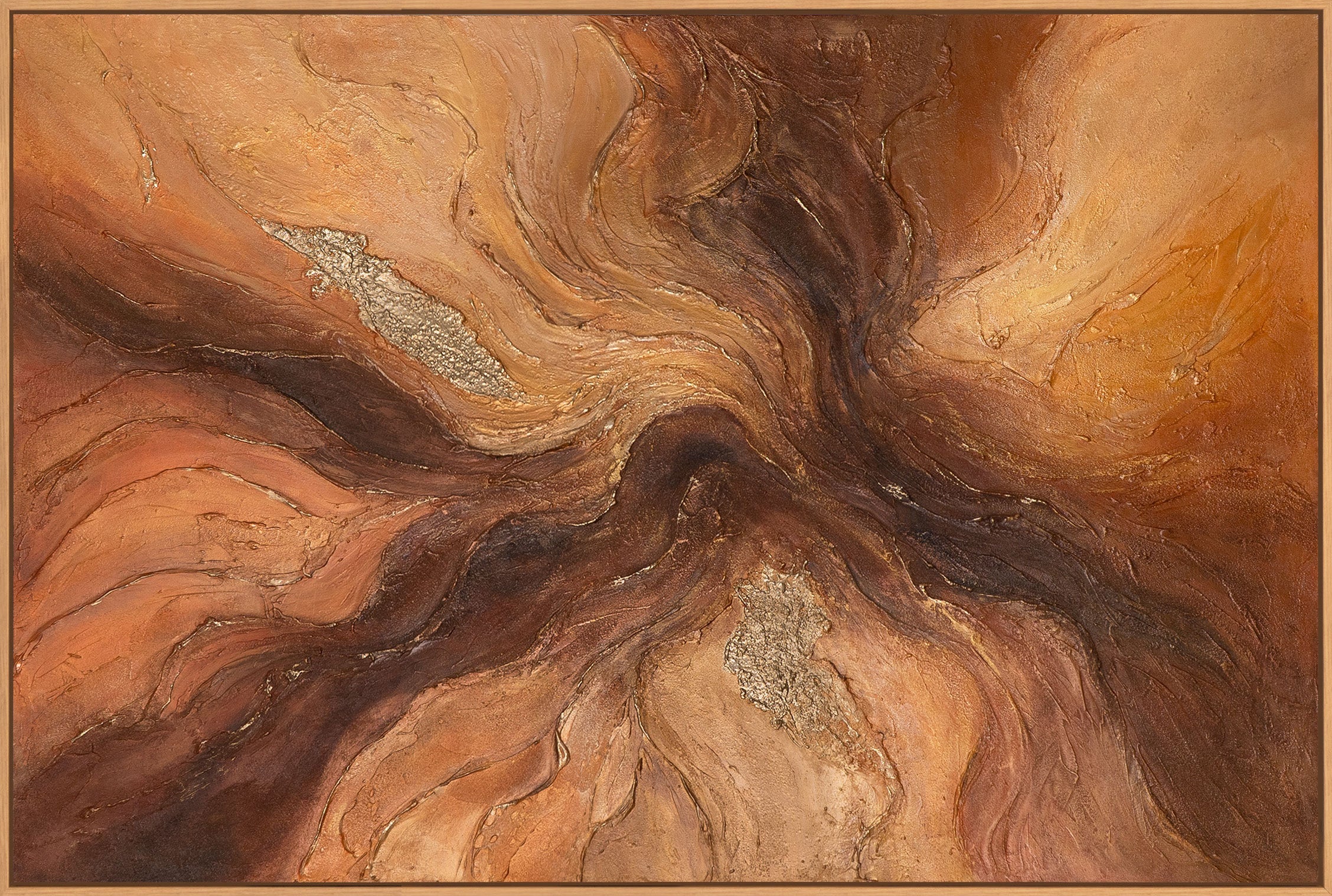 Handgemaltes Gemälde in warmen Erdtönen – moderne Leinwandkunst mit Rahmen „Bernsteinfarbene Ströme“