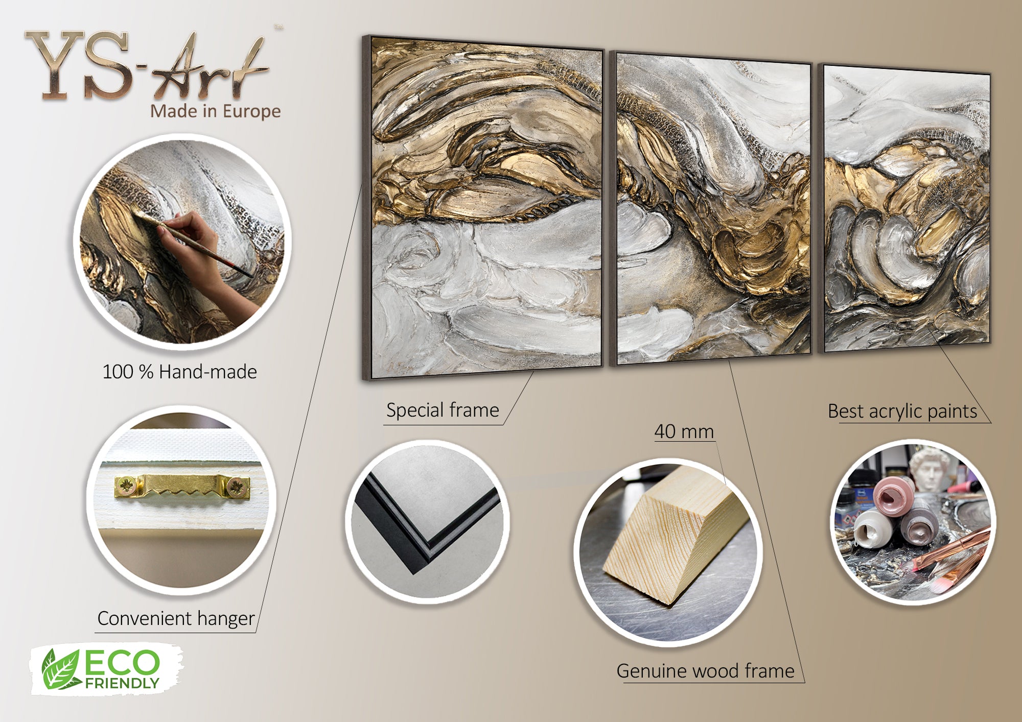 - Größe: 240x120 cm, 300x140 cm (Triptychon)