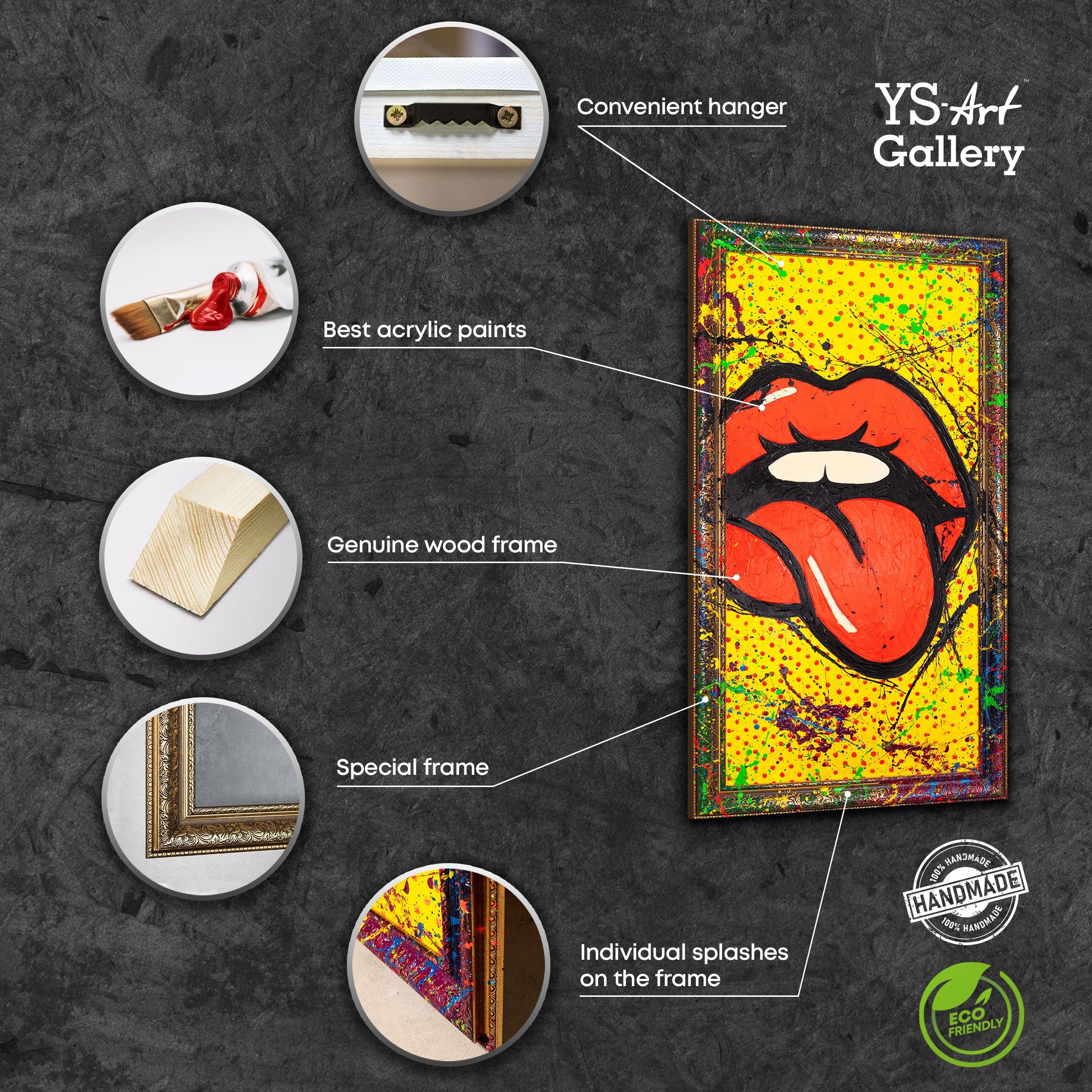 • Handgemaltes Wandbilder Wohnzimmer – Abstrakte Kunst mit Pop-Art Mund „WOW“