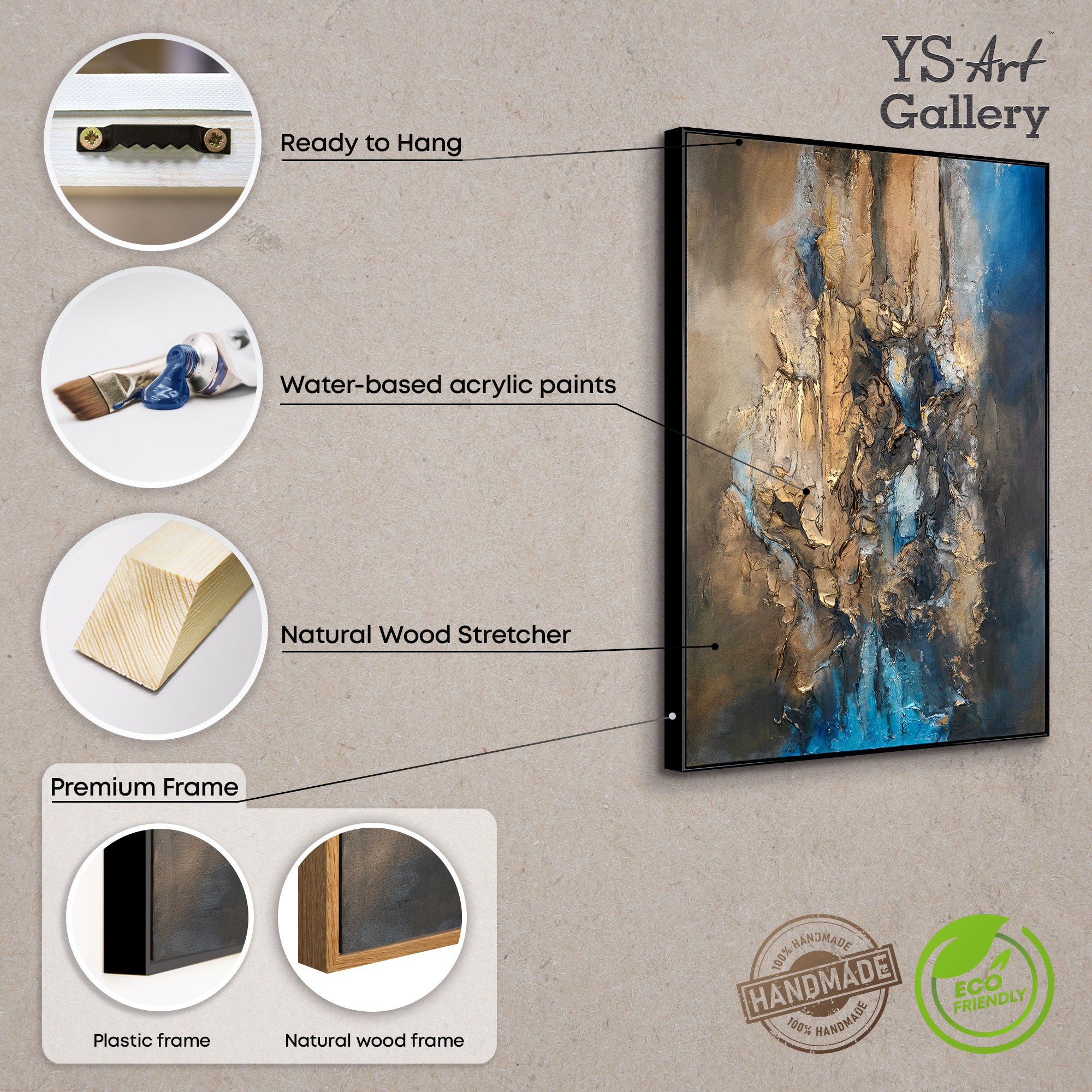 Dieses Kunstwerk, Teil der Kollektion große Bilder, ist ideal für eine stilvolle Wanddekoration und schafft eine künstlerische Atmosphäre in Ihrem Zuhause. Holen Sie sich jetzt dieses einzigartige Bild auf Leinwand mit Rahmen und verschönern Sie Ihr Wohnzimmer mit abstrakter Kunst.