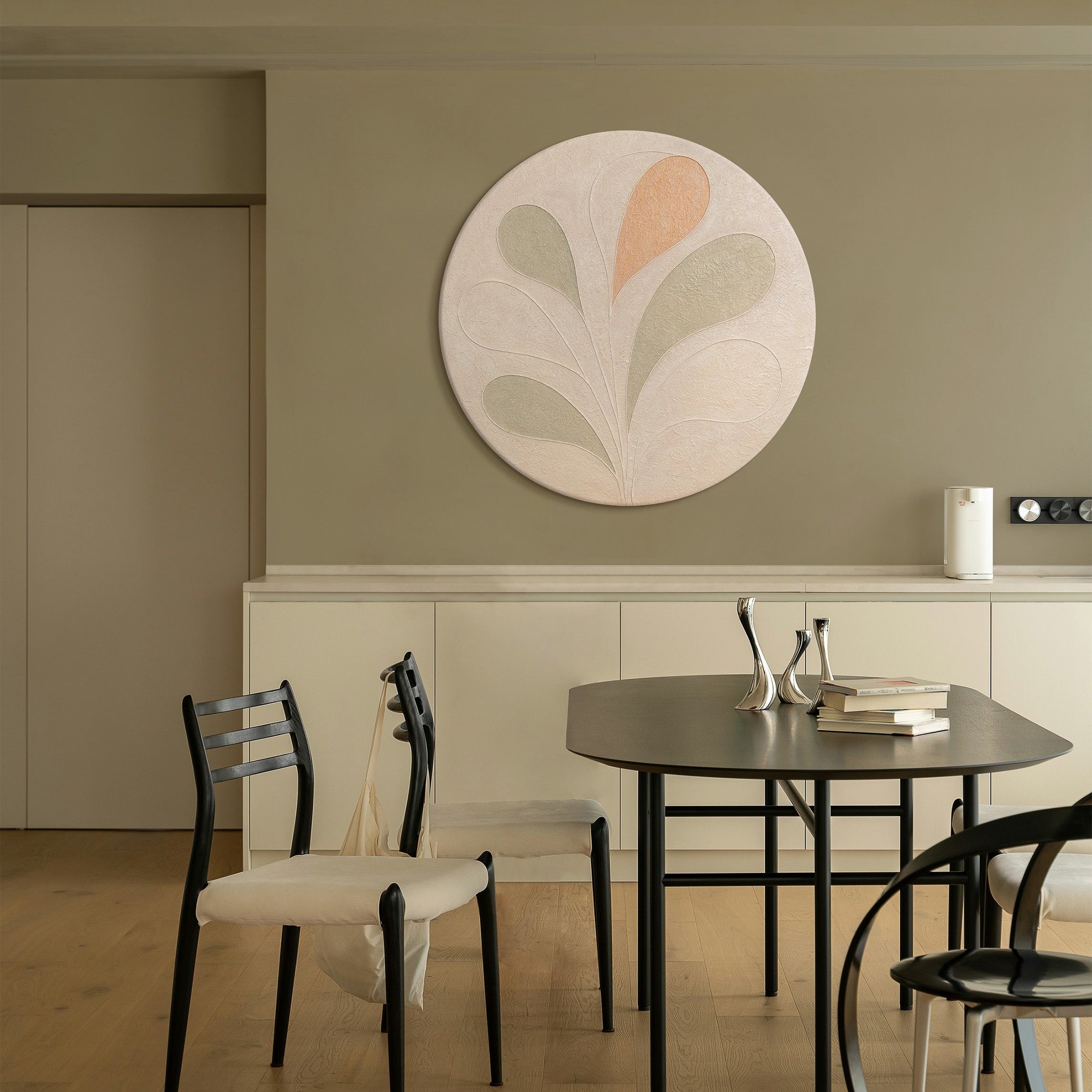• Rundes abstraktes Acrylbild in Beige und Pastell für die Arztpraxis