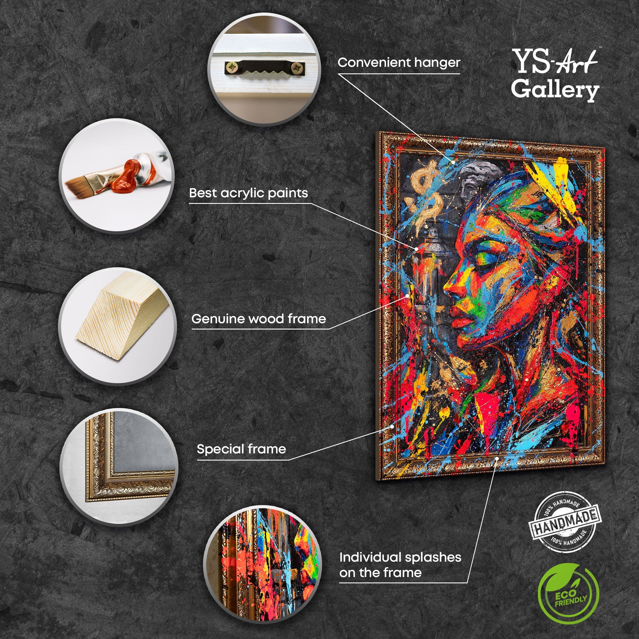 Diese Serie von Gemälden ist alles andere als Massenware: Jedes Werk ist zu 100 % handgefertigt und absolut einzigartig. Es wird auf der Welt kein zweites identisches Bild geben, da jedes individuell für den Käufer geschaffen wird.