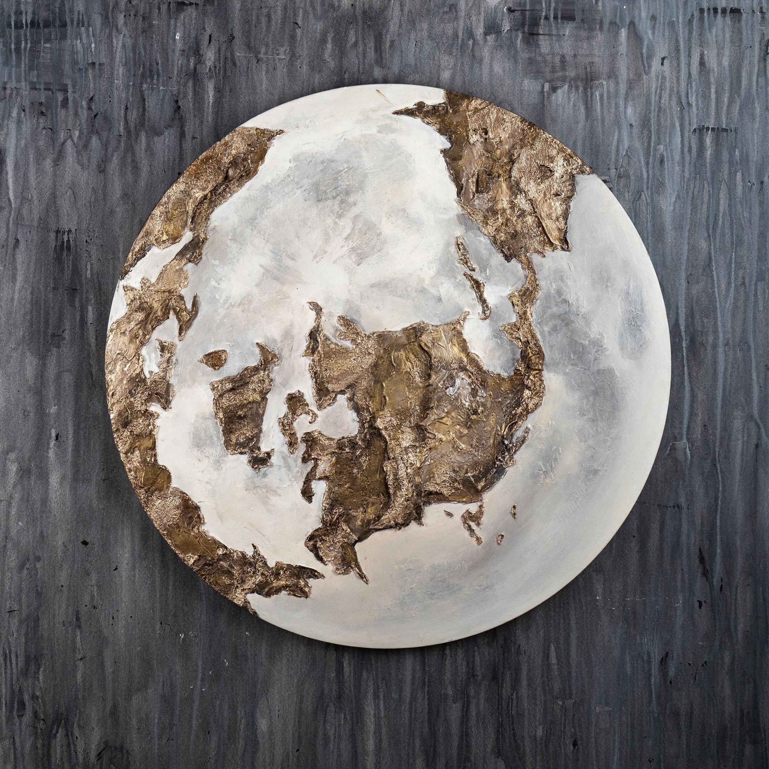 Runde Leuchtende Gemälde "Goldene Erde" moderne kunst