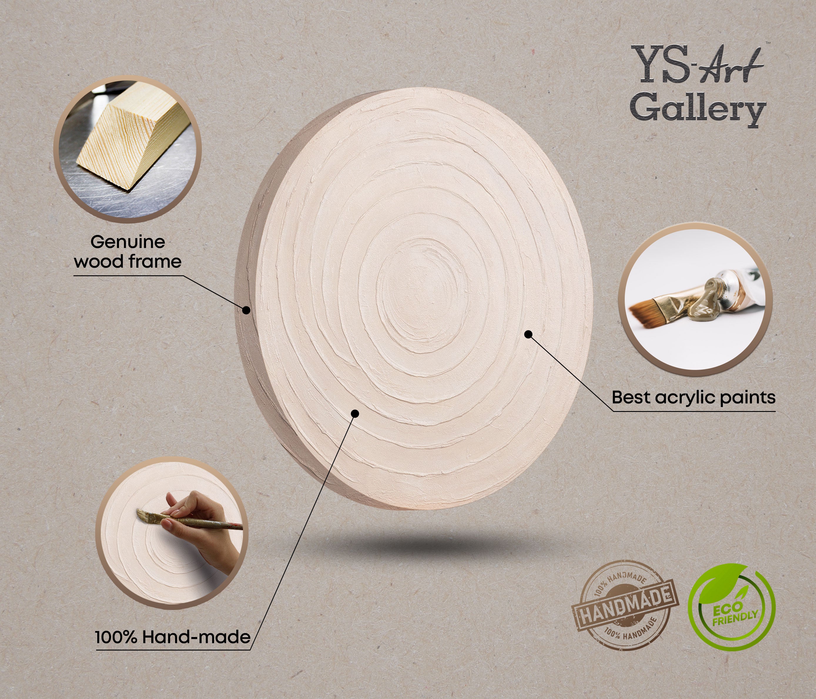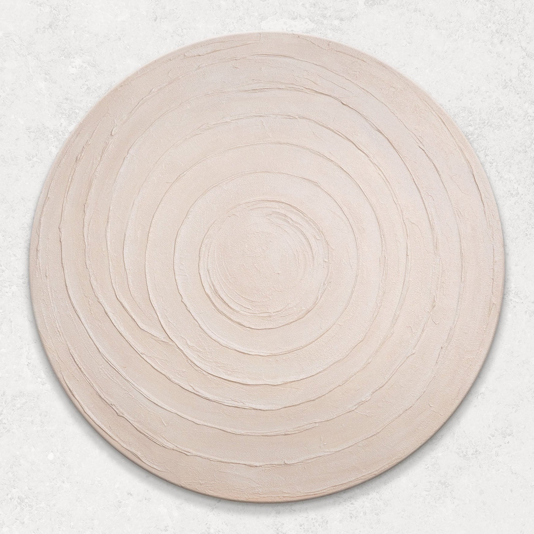 „Kreisförmiger Rhythmus“ ist ein rundes, handgemaltes Acrylgemälde, das durch seine konzentrischen Linien und sanfte Struktur besticht. In natürlichen Beigetönen gehalten, erinnert es an Wellen, Jahresringe oder meditative Bewegungen. Die reliefartige Oberfläche verleiht dem Werk Tiefe und bringt Ruhe sowie Balance in jeden Raum.